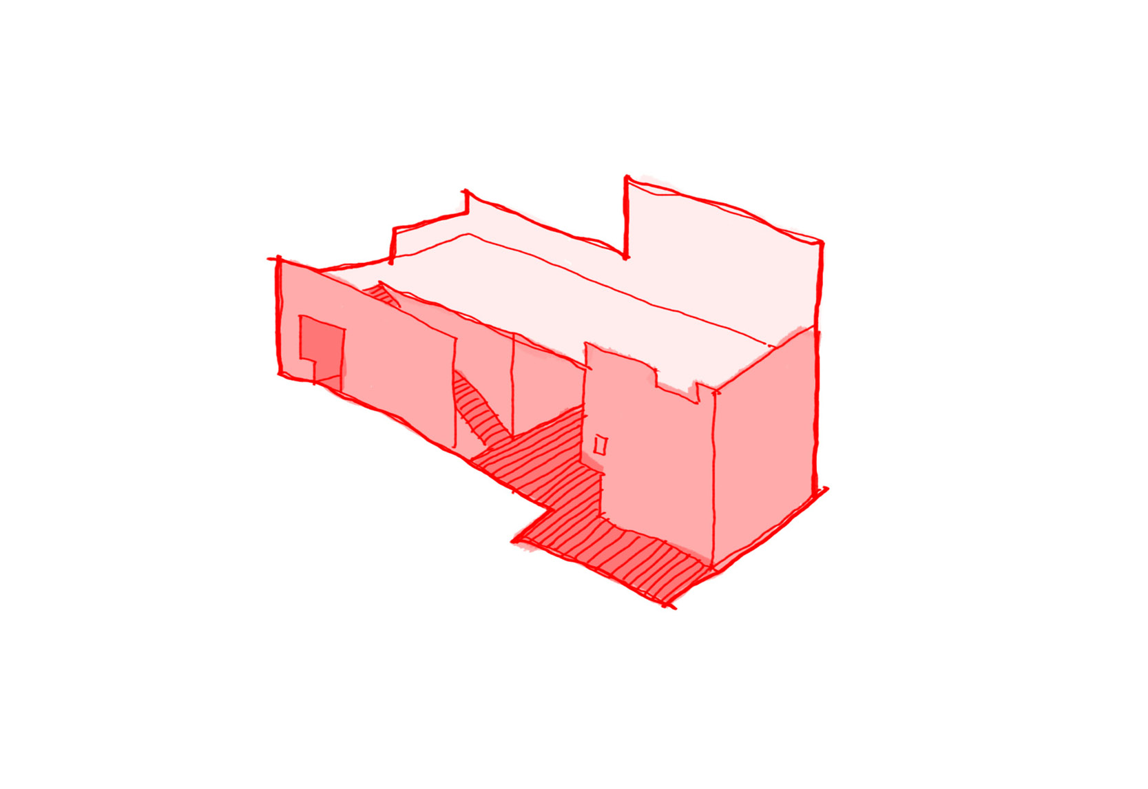 过道空间:采光差,无法满足后期功能需求,拆除重建;